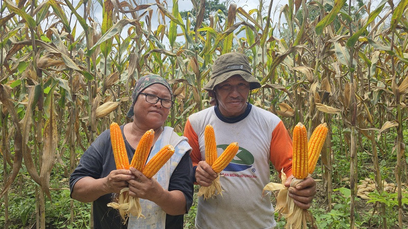 BANGGAI, MERCUSUAR – Setelah menunggu tiga bulan, Erwin Kutondong (51) dan Apmoni Maodja (53), pasangan petani Desa Honbola, akhirnya melakukan panen jagung di lahannya di Dataran Seseba, Kamis (12/2/2026).