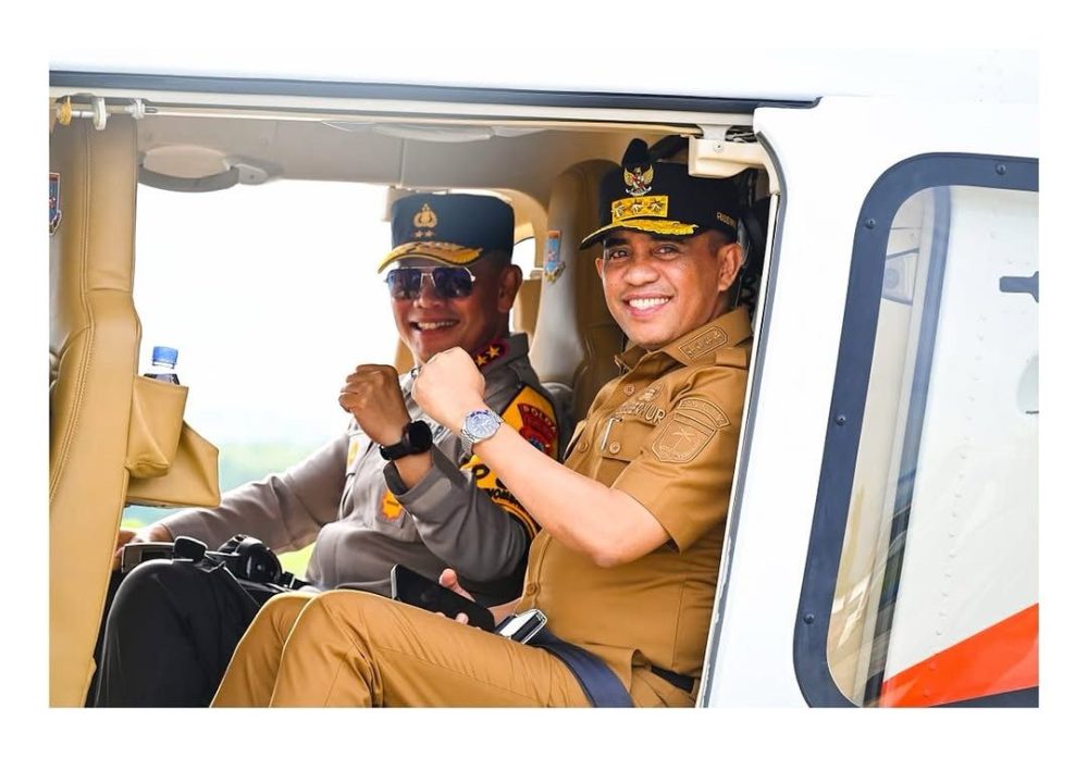 Gubernur bersama Kapolda bertolak ke wilayah Kecamatan Toili menggunakan helikopter. Dua desa yang menjadi titik peninjauan adala Desa Tirta Sari dan Tirta Kencana.