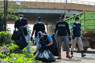 Kegiatan program Cleanup Action ini juga dirangkaikan dengan edukasi kepada para pedagang keliling yang mengais rejeki di bawah fly over tersebut dan menempelkan poster kampanye dilarang buang sampah di beberapa titik.