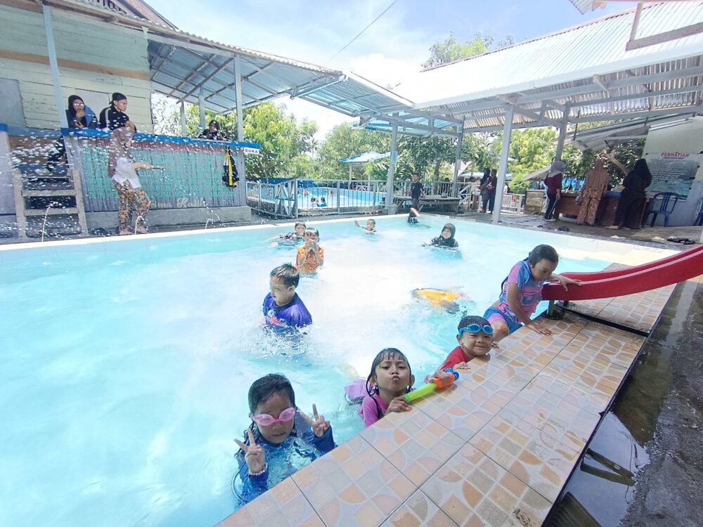 KABONENA, MERCUSUAR- Kolam Renang Berkah menjadi salah satu destinasi wisata favorit warga Kota Palu saat akhir pekan. Lokasi yang berada di Jalan Masjid Baiturrahim, Kelurahan Kabonena, Kecamatan Ulujadi ini dipadati pengunjung dari berbagai kalangan, mulai dari anak-anak hingga orang dewasa.