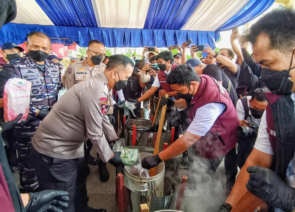 Sebelum diuji, barang bukti diuji terlebih dahulu untuk membuktikan keaslian narkotika. Kemudian sabu-sabu dimusnahkan dengan cara direbus kemudian dicampurkan cairan deterjen lalu dibuang.