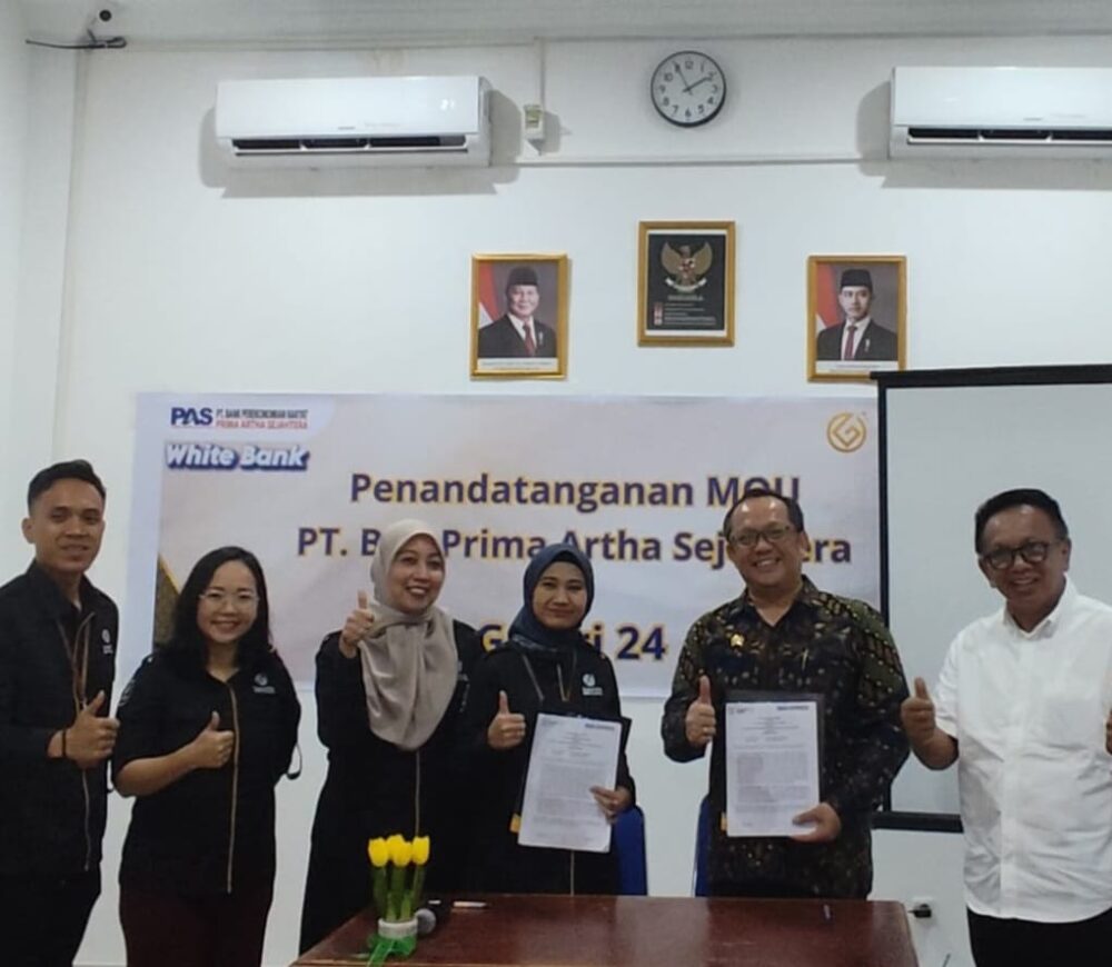 PALU, MERCUSUAR – Bank Perekonomian Rakyat Prima Artha Sejahtera (BPR PAS) atau White Bank menjalin kerja sama dengan Galeri 24, dalam peluncuran produk berhadiah emas. Kerja sama ini ditandai dengan penandatanganan Memorandum of Understanding (MoU) antara Dirut BPR PAS, Hendrik Sjam, dan perwakilan Galeri 24, baru-baru ini.