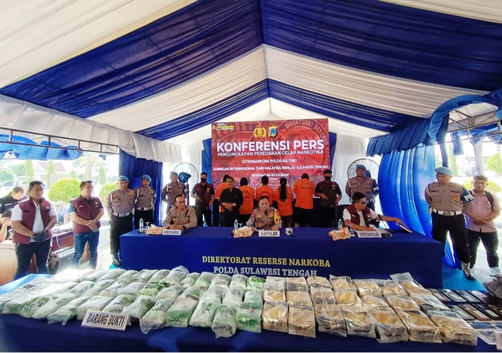 PALU, Direktorat Narkoba Kepolisian Daerah Sulawesi Tengah mengungkap kasus tindak pidana peredaran narkotika jenis sabu-sabu seberat sekira 60 Kg di wilayah Kabupaten Donggala.