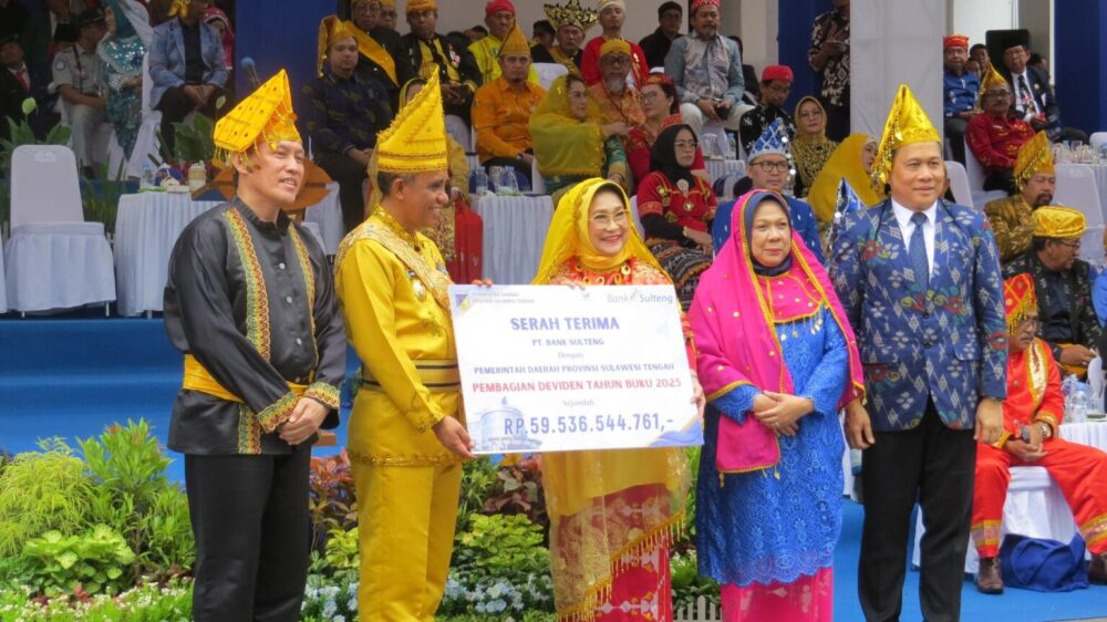 PALU, MERCUSUAR – Momentum peringatan Hari Ulang Tahun (HUT) ke-62 Provinsi Sulawesi Tengah dimanfaatkan untuk memperkuat sinergi antara pemerintah daerah dan sektor perbankan. Usai upacara yang berlangsung khidmat, Bank Sulteng menyerahkan deviden tahun buku 2025 sebesar Rp59,5 miliar kepada Pemerintah Provinsi Sulawesi Tengah, Senin (13/4/2026).