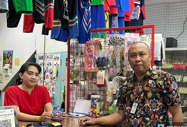 Selain edukasi tatap muka, tim juga melakukan penempelan stiker himbauan di etalase toko. Stiker tersebut berisi ajakan kepada masyarakat agar berhati-hati membeli barang dan mendukung produk asli.