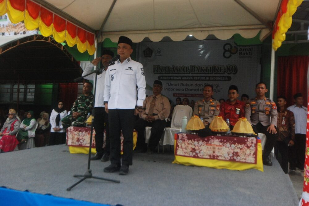 PALU, MERCUSUAR – Peringatan Hari Amal Bakti Kementrian Agama ke 80, dengan mengusung tema Umat Rukun dan Sinergi, Indonesia Damai dan Maju, Kementrian Agama Kota Palu, menggelar upacara, yang dipusatkan di lapangan upacara, Madrasah Aliyah Negeri 1 Kota Palu, Wali Kota Palu, Hadianto Rasyid, menjadi inspektur upacara.