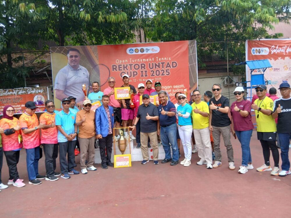 PALU, MERCUSUAR – Universitas Tadulako (Untad) akhirnya keluar sebagai juara umum dalam turnamen tenis Rektor Untad Cup II 2025 yang berlangsung selama lima hari, 12–16 November 2025. Bertindak sebagai tuan rumah, tim tenis Untad berhasil meraih gelar juara dan membawa pulang piala bergilir.