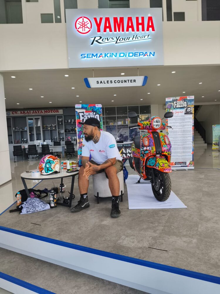 PALU, MERCUSUAR – CV Akai Jaya sebagai Main Motor Yamaha Sulteng bersama Pakar Artistik Lampurio berkolaborasi mengadakan praktik live painting pada body motor Yamaha Fazzio di Sentral Yamaha Palu, Sabtu (11/4/2026).