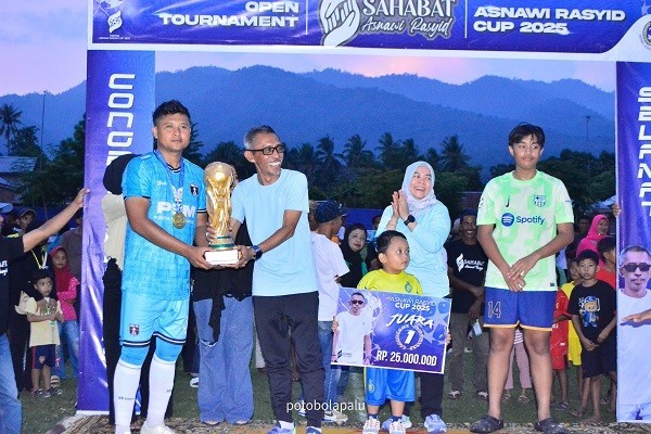 Di akhir sambutan, Asnawi mengucapkan selamat kepada PSM Poboya Sintuvu Maroso yang berhasil menjadi juara Asnawi Rasyid Cup 2025. CLG
