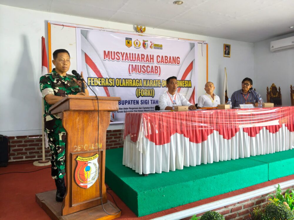 SIGI, MERCUSUAR– Musyawarah Cabang (Muscab) Federasi Olahraga Karate-Do Indonesia (FORKI) Kabupaten Sigi, Sabtu (31/1/2026), resmi menetapkan Pabung Kodim 1306/KP wilayah Kabupaten Sigi, Mayor Inf Tarno, sebagai Ketua Umum FORKI Sigi masa bakti 2026–2030.