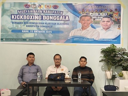 DONGGALA, MERCUSUAR – Yusran, kembali dipercaya memimpin Pengurus Kabupaten (Pengkab) Kick Boxing Indonesia (KBI) Donggala untuk periode 2025–2030. Ia terpilih secara aklamasi dalam Musyawarah Olahraga Kabupaten (Musorkab) yang digelar di Coffe & Go, Jalan Mangunsarkoro, Palu, Rabu (22/10/2025).