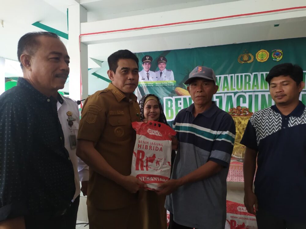 PARIGI MOUTONG, MERCUSUAR – Bupati Parigi Moutong (Parmout), H. Erwin Burase menyerahkan bantuan benih jagung hibrida serta alat dan mesin pertanian (alsintan) kepada para petani, di aula Kantor Dinas Dinas Tanaman Pangan, Hortikultura, dan Perkebunan (TPHP) Parmout, Senin (8/12/2025).