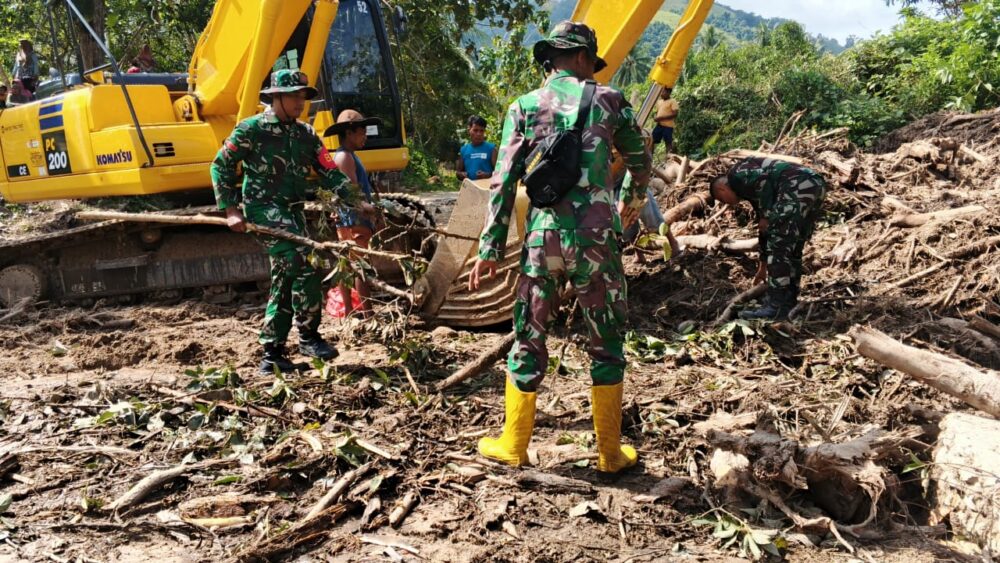 Babinsa Matolele, Praka Ninu Udaryana, bersama dua orang Komponen Cadangan binaan Koramil 1306-08/Parigi turun langsung membantu pembersihan material dan perbaikan jembatan darurat yang menghubungkan Dusun 1 dan Dusun 2. Upaya itu dilakukan bersama warga sekitar demi memulihkan akses transportasi.