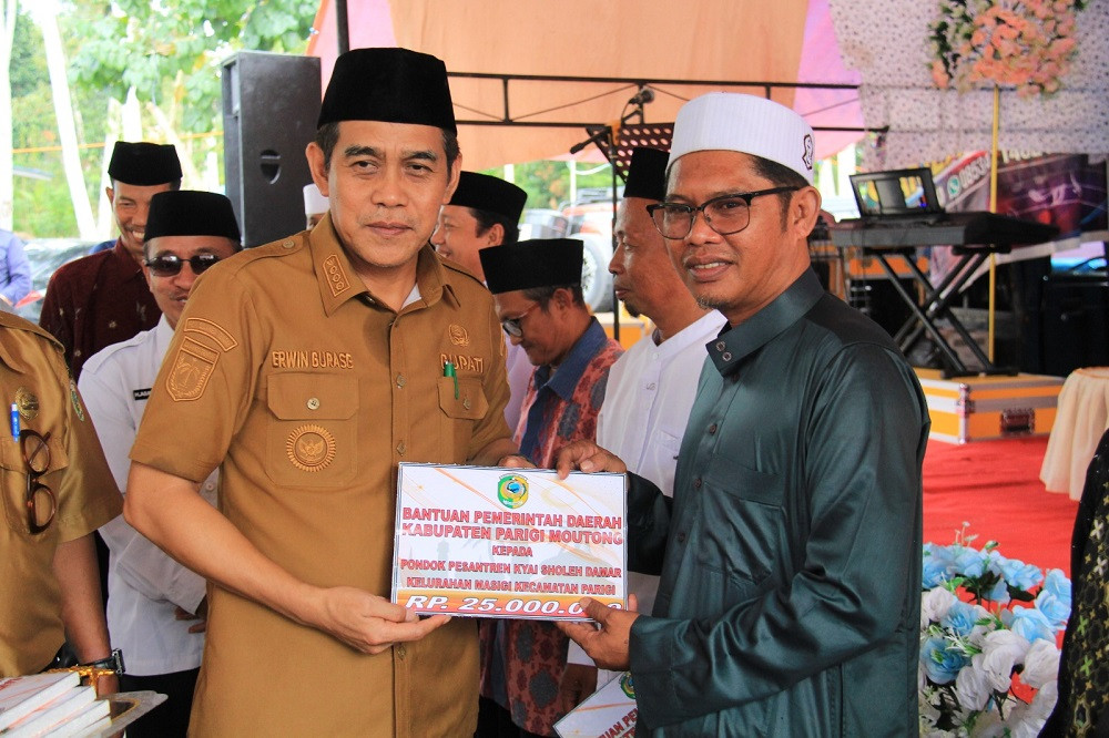 PARIGI MOUTONG, MERCUSUAR – Bupati Parigi Moutong (Parmout), H. Erwin Burase menyerahkan bantuan hibah keagamaan kepada sepuluh pondok pesantren (ponpes) di daerah itu, masing-masing sebesar Rp25 juta. Penyerahan secara simbolis berlangsung di Ponpes Ulumuddin Desa Boyantongo Kecamatan Parigi Selatan, Selasa (23/12/2025).