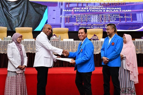 Mewakili Rektor Untad, Wakil Rektor Bidang Akademik Prof. Dr. Eng. Ir. Andi Rusdin, S.T., M.T., M.Sc., mengingatkan bahwa janji yang diucapkan merupakan komitmen besar terhadap kemanusiaan.