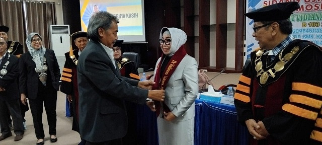 TONDO, MERCUSUAR – Kepala Dinas Pendidikan Provinsi Sulawesi Tengah, Yudiawati V. Windarrusliana, berhasil meraih gelar doktor pada usia 58 tahun. Disertasi yang diangkat berjudul “Strategi Pengembangan Sumber Daya Manusia Guru Produktif SMK di Dinas Pendidikan Provinsi Sulawesi Tengah”, yang dinilai relevan dengan tantangan peningkatan kualitas pendidikan vokasi di daerah.