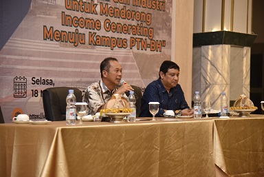 Tidak hanya itu, Tri Joko juga membagikan pengalaman ITS dalam membangun strategi kemitraan terpadu untuk mendukung kemandirian finansial menuju PTN-BH.