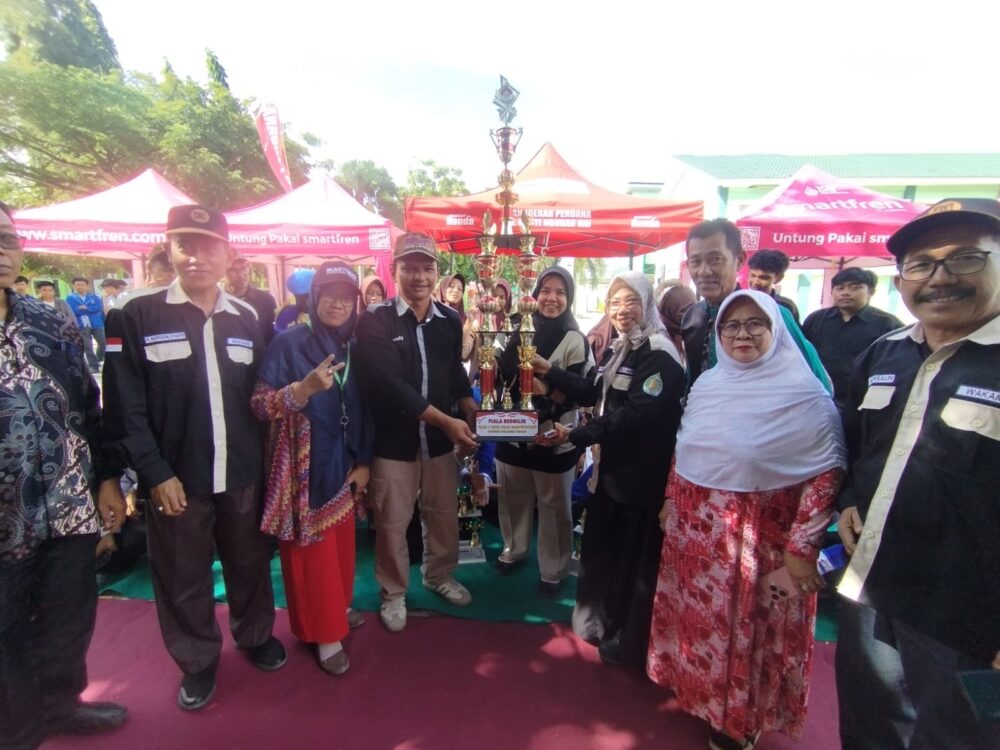 Piala diserahkan langsung Kepala MAN 1 Kota Palu, Hj. Rusdiana kepada pembina ekskul MTsN 2 Kota Palu, Mona S Pd yang mewakili kepala MTsN 2 Kota Palu.