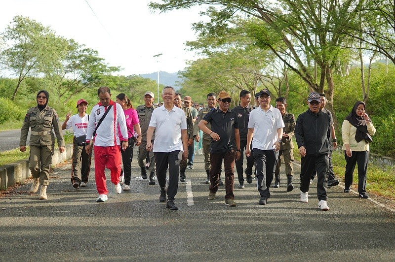 Peserta menempuh rute jalan santai mengelilingi kawasan Kompleks Perkantoran Sigi Kota, dengan suasana penuh semangat dan kebersamaan.