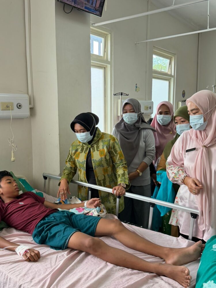 Halwiah menyusuri sejumlah ruang pelayanan, mulai dari Poliklinik Anak, Poliklinik Kebidanan, hingga Ruang Perawatan Anak. Ia menyapa pasien satu per satu, berbincang dengan keluarga pasien, serta menyampaikan dukungan moril agar tetap kuat dan optimis dalam menjalani proses perawatan.