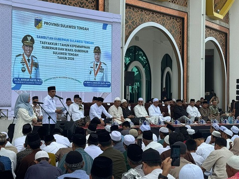 Apresiasi tersebut disampaikan Kepala Kanwil Kemenkum Sulteng, Rakhmat Renaldy, dalam kegiatan Tasyakuran 1 Tahun Sulteng BERANI di pelataran Masjid Raya Baitul Khairaat, Minggu (22/2/2026), yang dihadiri unsur Forkopimda, pimpinan DPRD, tokoh agama, tokoh masyarakat, serta jajaran perangkat daerah Pemerintah Provinsi Sulawesi Tengah.