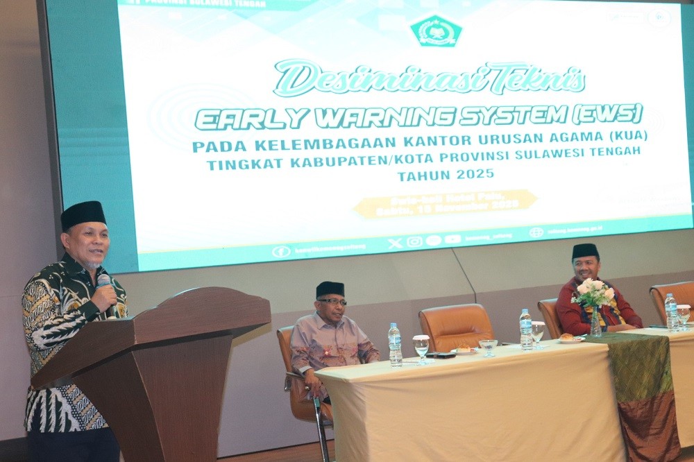 PALU, MERCUSUAR – Kantor Wilayah Kementerian Agama (Kanwil Kemenag) Provinsi Sulteng melalui Bidang Bimbingan Masyarakat Islam (Bimais) melaksanakan Diseminasi Teknis Early Warning System (EWS) konflik sosial berdimensi agama, yang dihadiri unsur Kantor Urusan Agama (KUA), di salah satu hotel di Palu, Sabtu (15/11/2025).