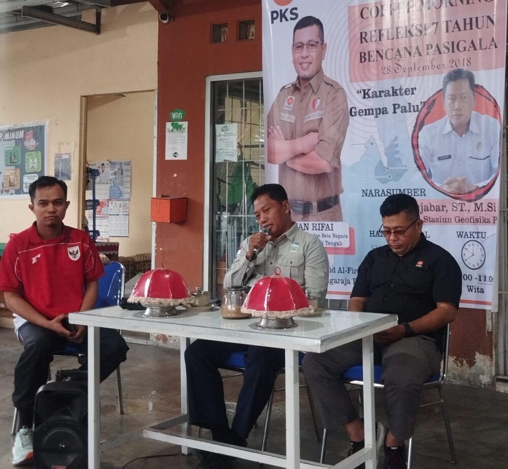 PALU, MERCUSUAR – DPW PKS Sulteng menggelar coffee morning bertajuk Refleksi 7 Tahun Gempa Bumi Palu, Sigi dan Donggala (Pasigala), menghadirkan Kepala Badan Meteorologi, Klimatologi dan Geofisika (BMKG) Sulteng, Sujabar, di halaman Masjid Al Firdaus Palu, Sabtu (27/9/2025).