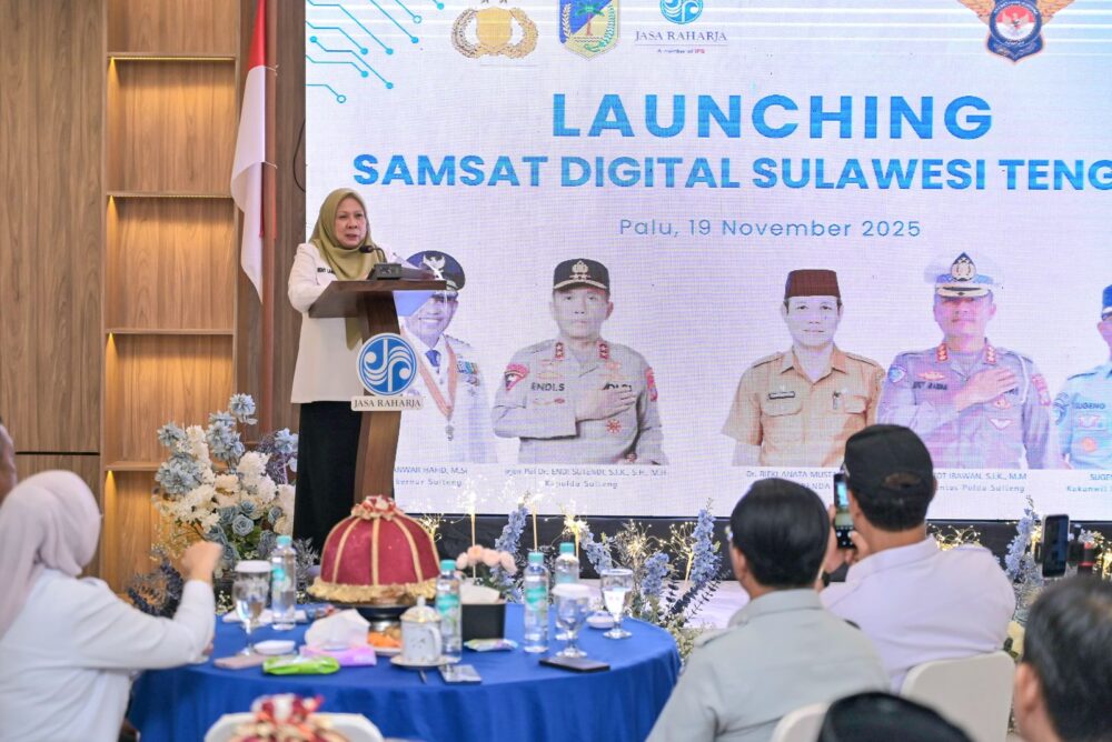 PALU, MERCUSUAR – Wakil Gubernur (Wagub) Sulteng, dr. Reny A. Lamadjido meluncurkan SAMSAT Digital, sebuah inovasi layanan berbasis teknologi yang dirancang untuk mempermudah masyarakat dalam mengakses administrasi kendaraan bermotor. Kegiatan tersebut berlangsung di Aula Kantor Wilayah (Kanwil) PT Jasa Raharja Sulteng, Rabu (19/11/2025).