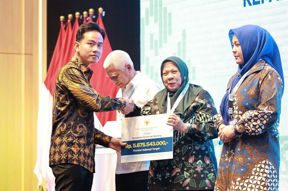 Penghargaan tersebut diserahkan Wakil Presiden RI, Gibran Rakabuming Raka dan diterima Wakil Gubernur Sulteng, dr. Reny A. Lamadjido, pada kegiatan Rapat Koordinasi Nasional (Rakornas) dan Rapat Koordinasi Teknis (Rakortek) Percepatan Penurunan Stunting tahun 2025, di Jakarta, Rabu (12/11/2025).