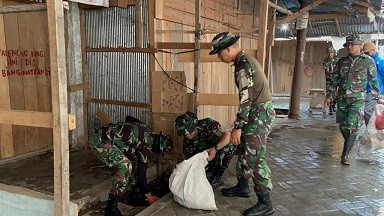 Personel Korem 132/Tdl bersama unsur masyarakat, pedagang, serta perangkat pasar bergotong royong melakukan pembersihan area pasar, pengangkutan sampah, penataan drainase, dan perapihan fasilitas umum. Suasana kebersamaan tampak kuat saat prajurit dan warga bekerja berdampingan, mencerminkan nilai-nilai gotong royong yang terus dijaga oleh TNI AD.