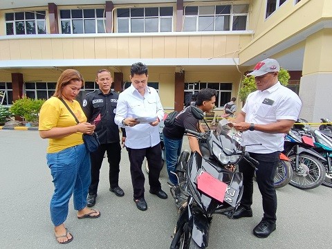 BESUSU BARAT, MERCUSUAR – Kepolisian Resor Kota (Polresta) Palu melalui Satuan Reserse Kriminal (Satreskrim) menyerahkan kembali satu unit sepeda motor hasil temuan kepada pemiliknya, Riri Sinaga.