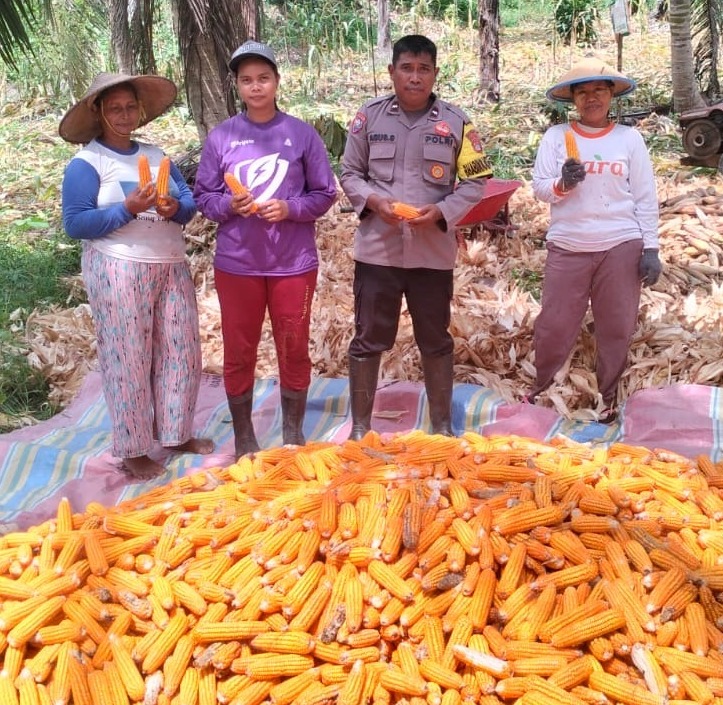 Pada kegiatan tersebut, Bhabinkamtibmas Desa Sausu Gandasari, Aipda I Wayan Agus Santoso, turun langsung mendampingi panen jagung di lahan milik Bapak I Made Patruma. Aipda Agus bersama warga memanen jagung secara gotong royong.
