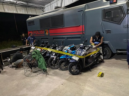 Dari hasil razia itu, petugas mengamankan barang bukti berupa tujug unit sepeda motor yang diduga milik para pelaku, satu buah ring atau arena sabung ayam yang digunakan sebagai tempat pertarungan, serta beberapa ekor ayam.