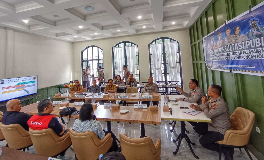 PALU, MERCUSUAR – Polda Sulawesi Tengah menggelar Forum Konsultasi Publik dalam rangka Optimalisasi Standar Pelayanan Publik pada Penerimaan Anggota Polri, di Ruang VIP Foodie Cafe and Resto, Selasa (10/2/2026).