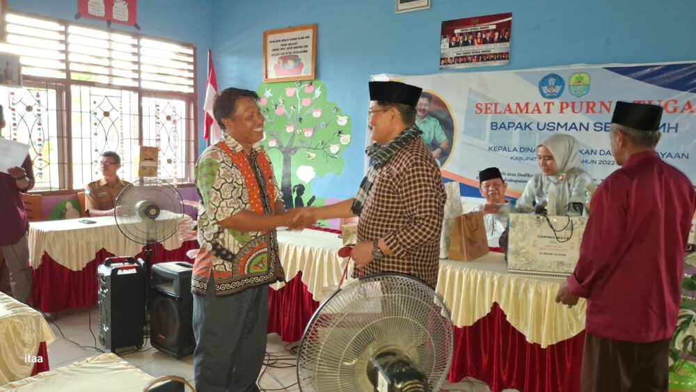 Dalam kegiatan tersebut, sejumlah perwakilan guru dan tokoh pendidikan menyerahkan cenderamata, sebagai tanda penghargaan atas pengabdian dan dedikasi Usman Taba selama bertugas.